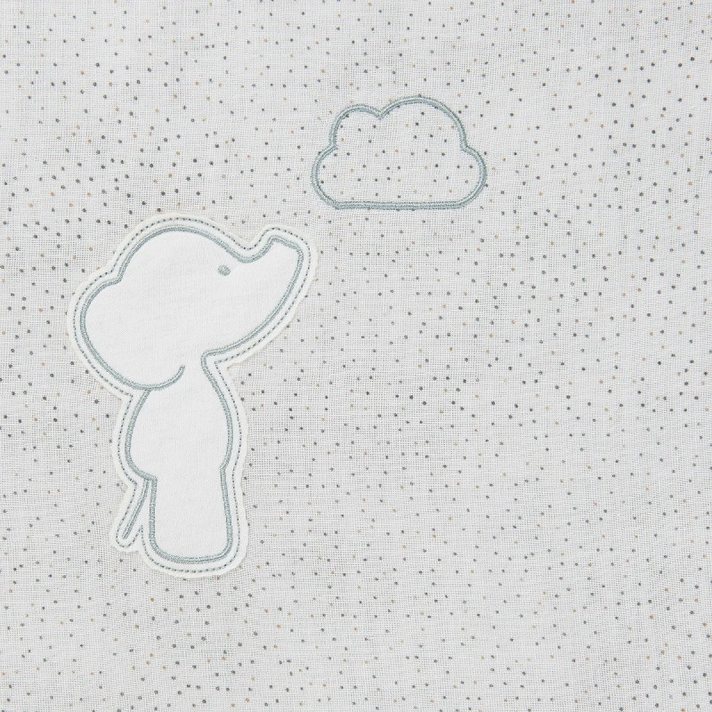 2 faces, 2 couleurs, 2 textures…. Voici ce que vous propose cette très jolie couverture 75 x 100 cm de la collection Luna & Axel de Nattou. Elle est, en effet, réversible, réalisée entièrement en coton et vous présente un côté en tricot uni vert clair, l’autre en tissu imprimé de délicats points, décoré par la présence discrète d’Axel, le charmant éléphanteau.