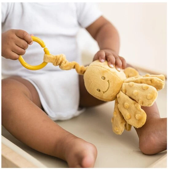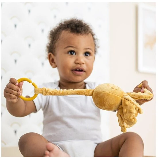 Une petite pieuvre très mignonne, qui remonte en vibrant lorsqu’on y tire dessus. Elle deviendra vite le meilleur copain de jeu des nouveau-nés et des bébés. A la fois ludique et jouet d’eveil, elle stimule les capacités motrices, ainsi que les reflexes innés de préhension du bébé. Les tentacules sont toutes douces, juste à la taille de ses petites mains, avec de légers reliefs qui eveillent sa curiostié et son sens du toucher. Se suspend facilement grâce à son anneau Peluche douce pour nouveau-nés, Adaptée également aux bébés prématurés, Idéale pour eveiller bébé. Fonction de vibration amusante Matière 100 % polyester, Lisse et agréable au toucher, Taille adaptée aux nouveau-nés : 21 cm Lavable à la main