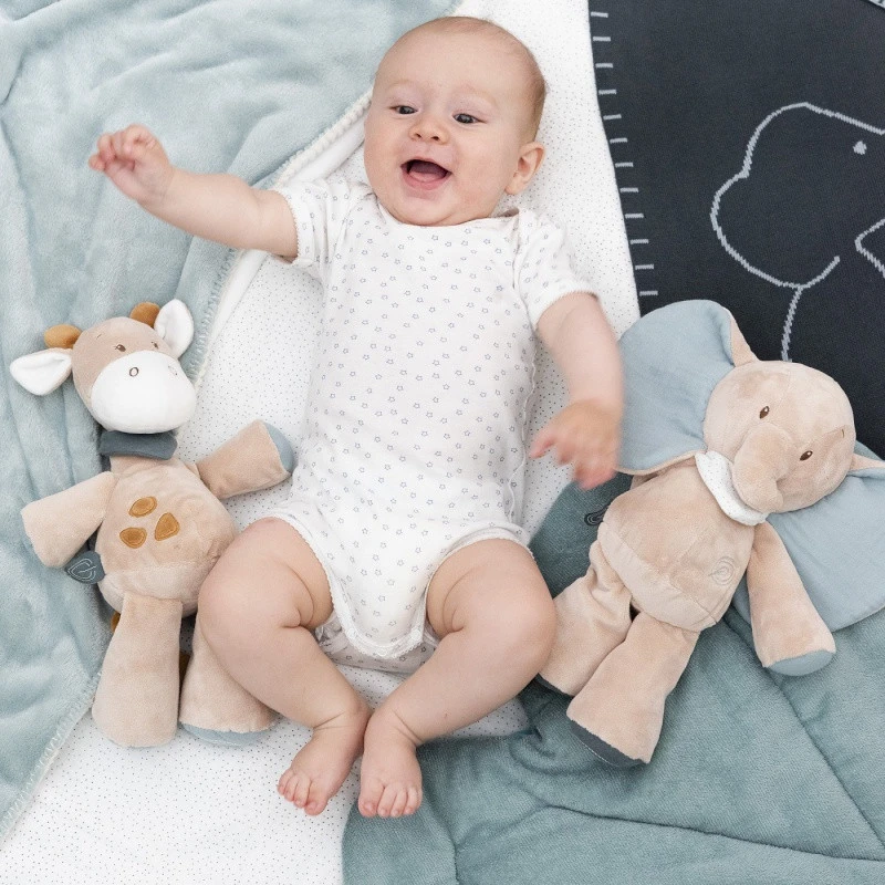 La peluche éléphant de Nattou propose à votre petit de nombreuses possibilités de l’attraper facilement : de grandes pattes fines, de gigantesques oreilles plates, et une belle trompe élancée. Un compagnon fidèle, souple, qui se laisse trimballer partout, et qui participe au développement de la motricité de bébé.