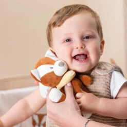 Avec ses longues pattes fines et ses belles oreilles, la peluche musicale renard de la collection Alice et Pomme par Nattou est facile à saisir par votre bout de chou. Elle peut dès lors partager ses jeux, ses balades, lui apporter le réconfort indispensable s’il est loin de la maison ou fatigué, et le rassurer de ses odeurs familières. De plus, elle participe au développement de sa motricité ainsi qu’à son éveil auditif.
