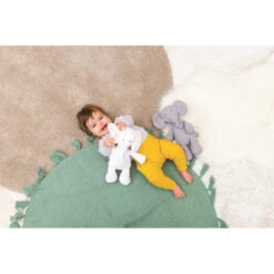 La peluche possède aussi de petits liens permettant de l’accrocher au bord du lit, sur la poignée de son siège auto, de sa nacelle, ou sur la poussette.